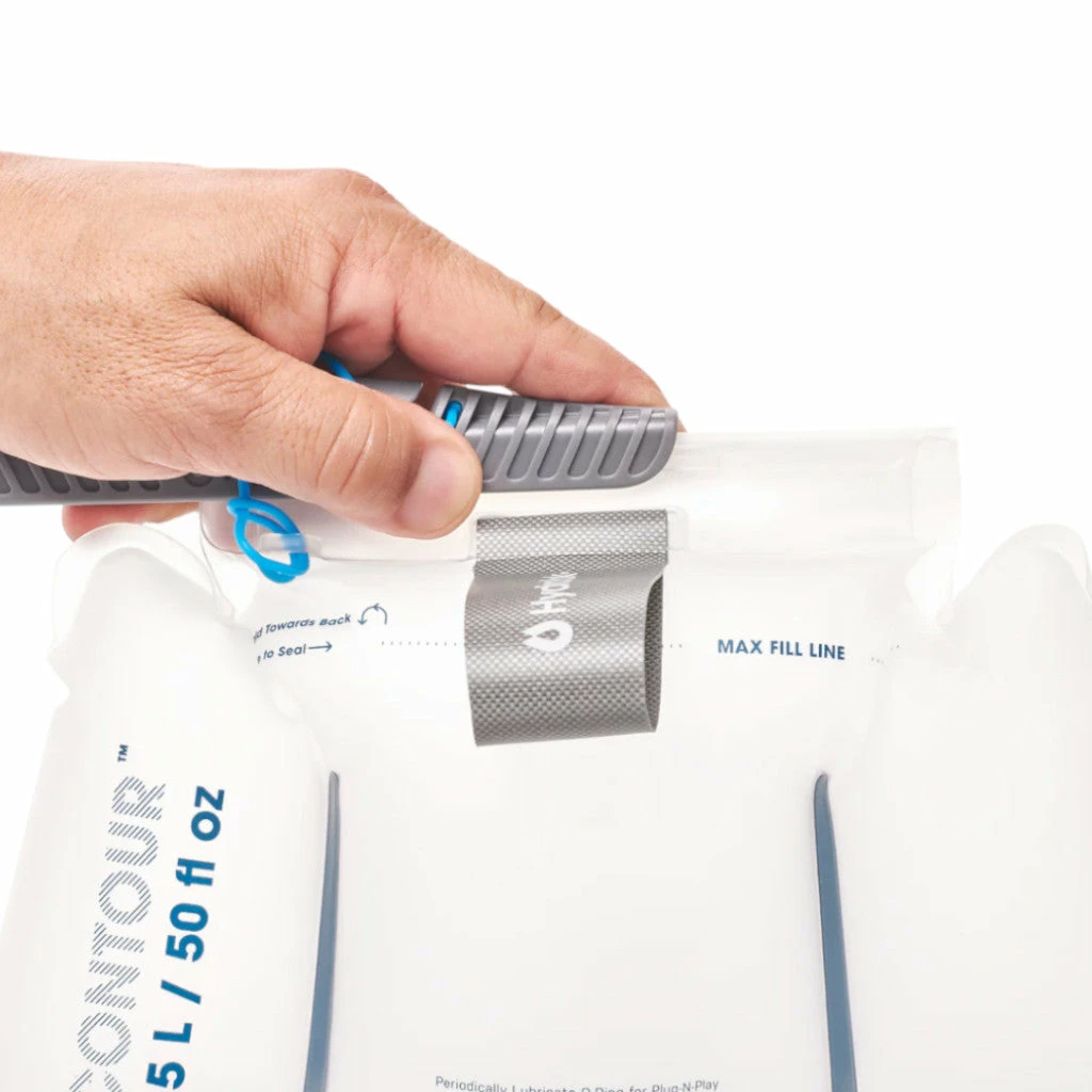 La poche à eau Contour lumbar de Hydrapak est un accessoire conçu pour toute pratique sportive à vélo, pour les sorties en VTT tant comme gravel sur chemins accidentés et hors-piste. Son design fin et sa forme arrondie sans bordure facilitent son insertion dans un sac banane. La fermeture coulissante se retire entièrement afin de faciliter le remplissage de la poche à eau. Elle se replace ensuite fermement, assurant une étanchéité parfaite. La poche à eau Contour Lumbar Hydrapak a un volume de 1.5 L .